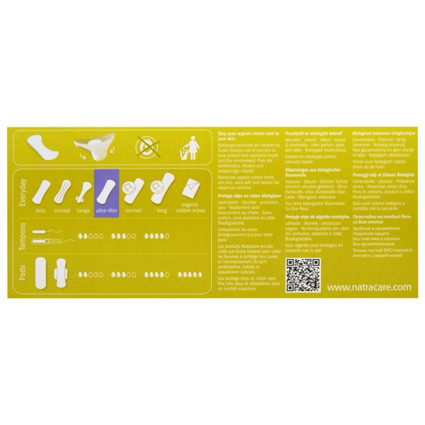 Natracare cotton panty liners are ultra-thin and contoured in line with the body’s natural curves for discretion and comfort. Soft certified organic 100% cotton for natural comfort and dryness, with a leak proof barrier made from GM-free plant starch. This flexible panty liner is totally chlorine free and over 99% biodegradable and compostable. Free from…